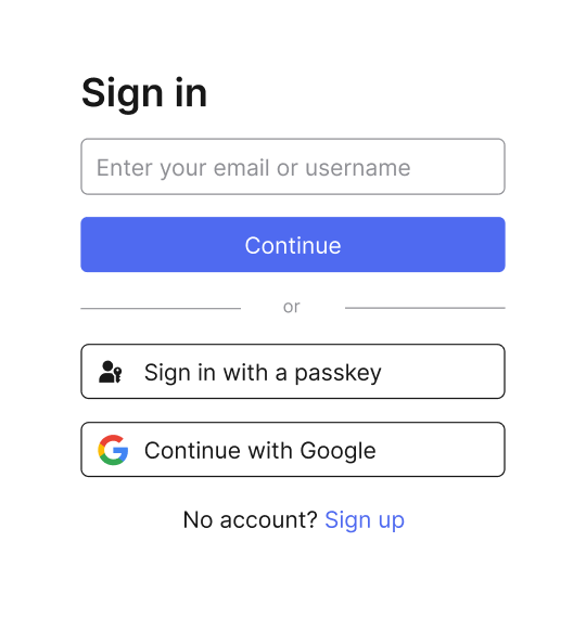Our recommendation: Modern and secure, utilizing passkeys instead of passwords. Also including a fail-safe fallback login option with passcodes and email verification during sign up.