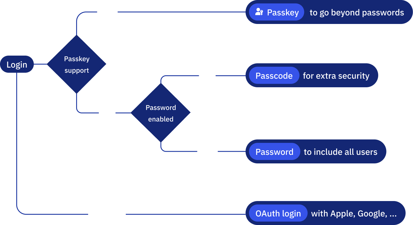 Depending on your audience, offering only passkeys for authentication can be a viable and highly secure configuration. Not every device supports passkeys yet, though, so be aware that you may exclude some of your users.